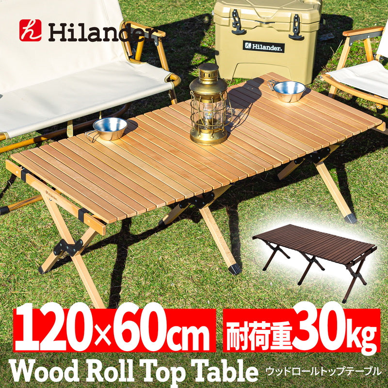 Hilanderのウッドロールトップテーブル:キャンプの定番アイテム