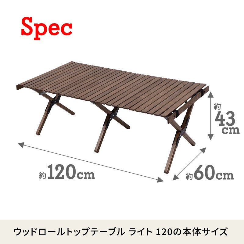 ウッドロールトップテーブルLIGHT アウトドア キャンプ ローテーブル 折りたたみ ブラックパーツ 120【1年保証】