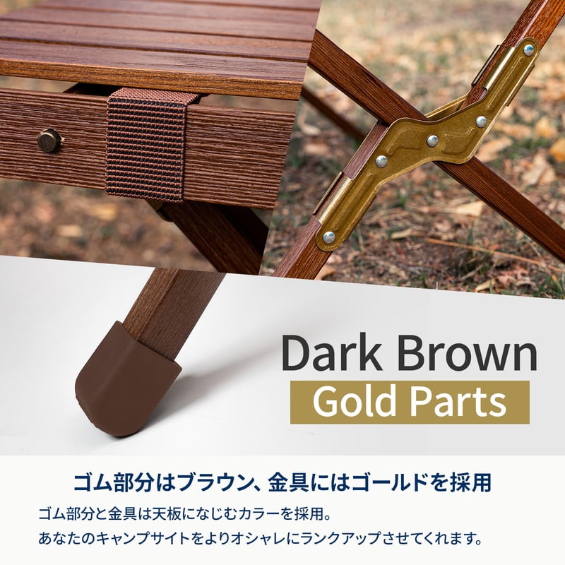 ウッドロールトップテーブルLIGHT 60 アウトドア キャンプ ローテーブル 【1年保証】【発送予定1~2日】 ダークブラウン/ゴールド