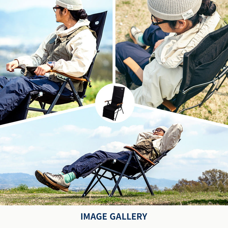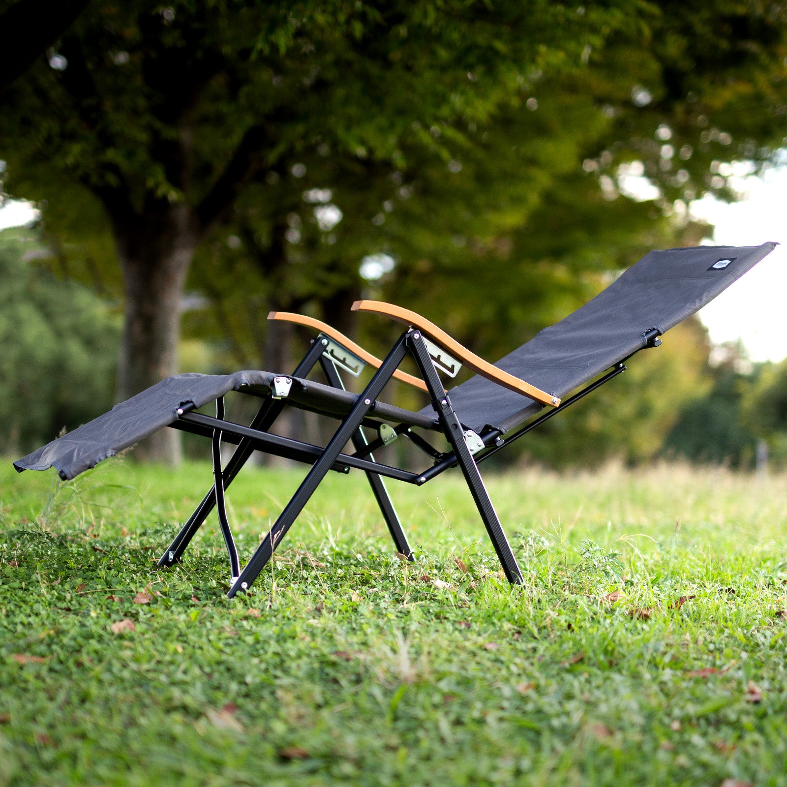 リクライニング性能は、クライマックスローチェアとほぼ同等。フットレストが浮いた足元を支え、リラックス効果を高めるため、更に解放感を味わえます。