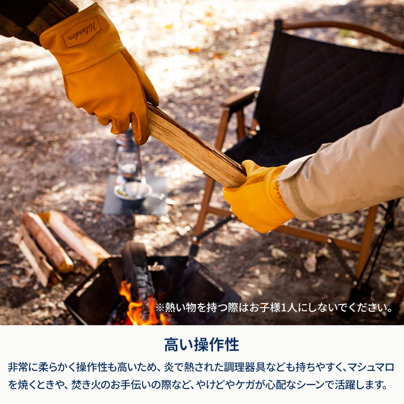 ●焚き火も調理も薪割りも。頼れる本革焚き火用グローブ