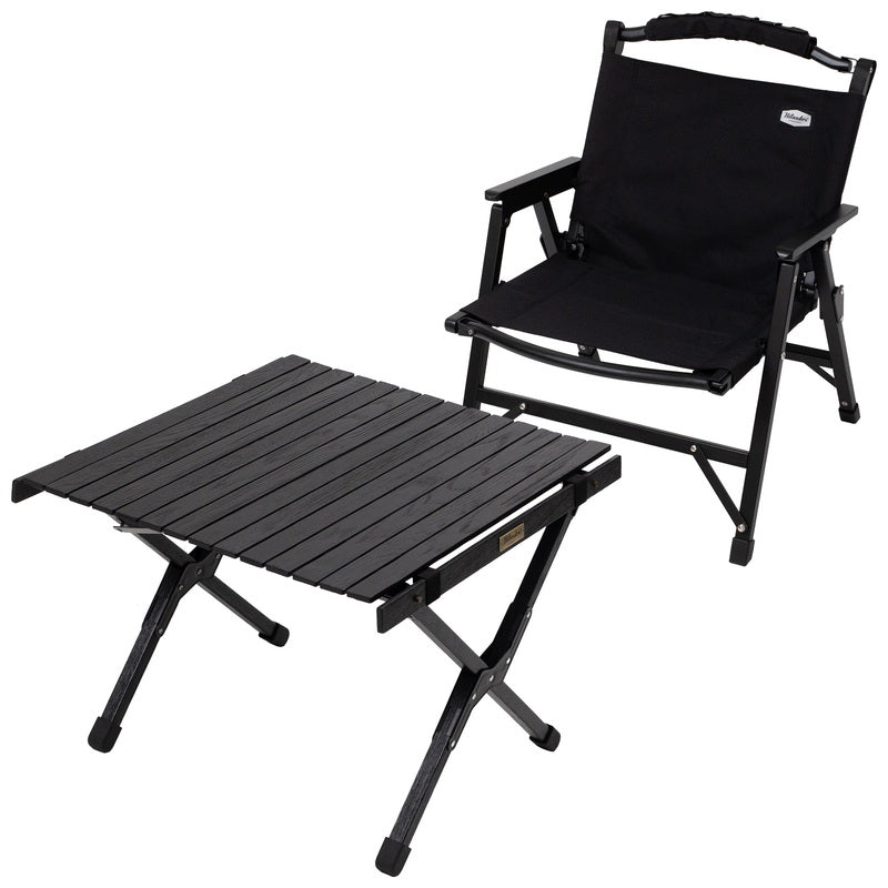 【お得なセット】ウッドロールトップテーブルLIGHT 60+ウッドフレームチェアEX ブラックセット【発送予定1~2日】