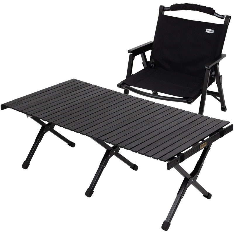 【お得なセット】ウッドロールトップテーブルLIGHT120+ウッドフレームチェアEX ブラックセット【発送予定1~2日】