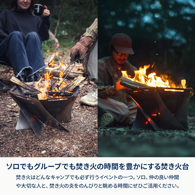 ●ソロからファミリーまで幅広く使える、コンパクト収納でオシャレな六角焚き火台、六花(りっか)