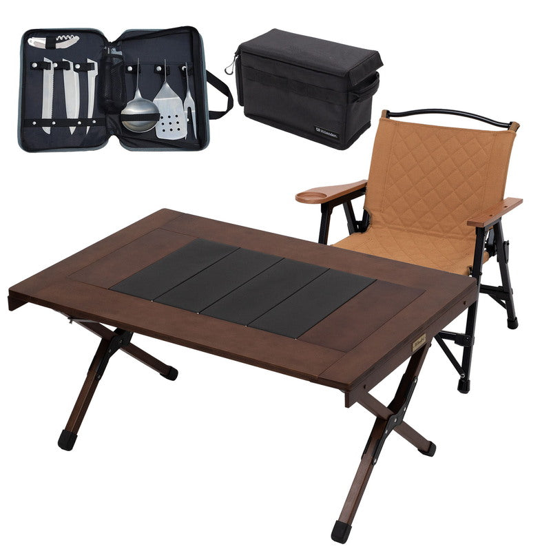 ●IGT互換のウッドテーブルと、相性抜群のチェアに便利なミニソフトクーラーとキッチンツールセットがついた4点セット